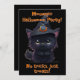 Invitation Jolie fête blanche d'Halloween magique chat noir