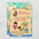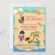 Ahoy là mûrs ! Profitez de cette mignonne invitation d'anniversaire de pirate et de sirène avec une carte des trésors, bateau pirate, pirate fille rose, sirène, perroquet, crâne et os croisés et coffres de trésor! Ajoutez votre propre touche spéciale avec des modèles personnalisés pour tous les détails de votre fête sur le devant de la carte. Le dos de la carte comprend plus de garçons et de filles pirates, sirènes et coffres au trésor sur une carte au trésor à utiliser comme jeu de société pour plus de plaisir créatif avec des dés et des jetons. Parfait pour les enfants de tous âges !