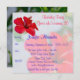 Les fleurs tropicales hawaïennes créent de jolies invitations à une fête d'anniversaire spéciale. personnalisez les espaces modèles pour tout âge. L'hibiscus tropical lumineux sur le devant se reflète dans la version douce qui forme le arrière - plan