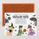 Cette invitation d'anniversaire amusante présente 5 enfants dessinés à la main en costumes (un super-héros, une sorcière, un dinosaure, une princesse ballerine et un requin). D'autres petits détails incluent des chauves-souris, des étoiles, des bonbons, des araignées et une petite citrouille. Le dos de la carte contient un motif de points sur fond orange. Parfait pour votre enfant qui veut une fête d'anniversaire avec des costumes sur le thème d'Halloween ! Pour une demande de conception ou de produit personnalisé, veuillez me contacter (Tracey) à orabellaprints@outlook.com.