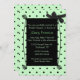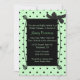 Douce invitation nuptiale faite en vert menthe clair avec un petit motif à pois noir et une zone de texte noir fantaisiste, avec un petit arc noir, dans le coin supérieur droit. Le texte en vert menthe clair est entièrement personnalisable pour répondre à vos besoins. Jolie invitation à la mariée d'être.