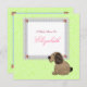 Personnalisez en ajoutant votre nom de bébé à cette invitation de baby shower fille de style champêtre mignonne avec une image d'une courtepointe comme en vichy chien brun, dentelle, roses, et un cadre vert pastel. Jeu de cadeaux pour bébé thème correspondant disponible à la boutique de cadeaux PhotographyTK Designs.