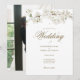 Jolie invitation de mariage à fleurs blanches avec une délicate floraison printanière encadrant vos détails de mariage en lettrage doré élégant. Personnalisez avec les détails de votre événement spécial. Le verso présente votre propre photo spéciale. Conçu par Thisisnotme©