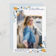 Célébrez votre grade en style avec cette invitation/faire-part de remise de diplômes avec sa photo encadrée par de jolies fleurs bleu et or petite. Ajoutez les détails de votre fête à l'arrière. Branché et élégant, mais simple et classique, l'invitation parfaite pour célébrer la grande réussite de votre diplômé.