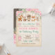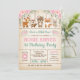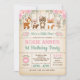 Invitation rustique d'anniversaire boisé avec d'adorables animaux de la forêt - ours, cerfs, renard, chipmunk et un lapin, ainsi que de jolis roses d'aquarelle et de la verdure. Une invitation parfaite pour votre petite fille !