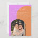 Invitation de la fête d'engagement colorée et amusante avec une photo de la mariée et du marié à être.