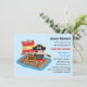 Une mignonne invitation pirate qui présente un petit garçon déguisé en capitaine de pirate avec un casquette de croisés de pirates, un carré oculaire et un télescope de navigation. Il est sur un radeau fait de rondins de bois avec un tonneau et une voile rouge et jaune. Personnalisez facilement avec les détails de votre fête et utilisez un langage de pirate amusant comme des compagnons d'ahoy et de hideout en ligne avec le thème pirate! Vous pouvez également personnaliser l'âge de l'enfant dans la voile. Bandes rouges et noires au verso de la page.