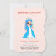 Jolie princesse anniversaire Invitation avec une belle fille habillée sur turquoise et pois à l'arrière. Tous les textes et numéros sont prêts à être personnalisés.