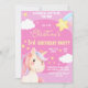 Invitation Jolie rose magique moderne licorne étoile 3e anniv