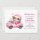 Invitation Jolie Sloth rose conduire une voiture Anniversaire