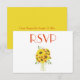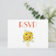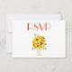 Jolie invitation RSVP tournesol, le devant présente un arrière - plan blanc il ya un tournesol jaune à l'intérieur d'un vase clair avec une marée bleue autour du cou. "RSVP" est écrit en haut dans une jolie police orange. Le dos continue avec des informations importantes sur un arrière - plan jaune. Conception de l'invitation : WeddingsbyRhoadie Oeuvres d'art florales : AMBillustrations http://www.etsy.com/shop/AMBillustrations/