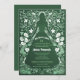 Cette invitation de quinceañera exquise présente une silhouette époustouflante d'une jeune femme parée d'une belle robe, capturant l'essence de la célébration de l'entrée dans l'âge adulte. L'image prend vie sur un fond vert, ajoutant une touche d'élégance et de sophistication. S'entremêlant avec la silhouette, des motifs floraux complexes rendus dans une teinte dorée saisissante donnent au design une touche royale. Le mélange des tons or blanc et vert crée une esthétique à la fois saisissante et agréable à l'œil. Chaque détail du design met magnifiquement en place la scène pour la célébration mémorable de quinceañera à venir.