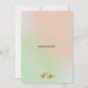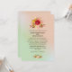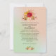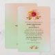 Une invitation de mariage avec un espace au dos pour votre site web de mariage. Avec un beau design floral de fleurs sauvages avec des fleurs rouges et jaunes, contrastées avec des feuilles et des brindilles roses et marron. Sur un fond dégradé vert menthe et rose corail clair.