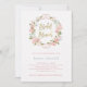 Cette belle invitation au brunch nuptial comporte une couronne de roses d'aquarelle rose avec des accents feuilles verts et faux or rose, et faux script d'or au centre. Le dos de la carte est d'une couleur rose douce avec des bouquets floraux assortis dans les coins.