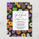 Ce motif d'Halloween cool et mignon est parfait pour une ambiance amusante et douce. Il présente des donuts illustrés de citrouille jack o'lantern, fantôme, araignée, maïs d'Halloween, monstre et globe oculaire sur des confettis brillants imprimés faux avec un fond noir simple. La palette de couleurs comprend le vert, le violet, le jaune, l'orange, le marron, le rouge, le noir et le blanc. C'est ludique, unique, drôle et moderne. Profitez de ce design dessiné à la main par l'artiste de La Femme, Rachel Matheney.