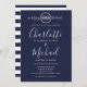Doté d'un noeud de navire et de noms de style signature, cet élégant faire-part de mariage nautique peut être personnalisé avec vos informations en lettres blanches chic sur un arrière - plan bleu marine. Conçu par Thisisnotme©