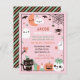 Une invitation mignonne, drôle et colorée pour la période d'Halloween d'octobre ! Il présente les favoris d'Halloween tels que chauves-souris, lune, fantôme, araignée, bonbons de maïs accrochés à la toile d'araignée, feuilles d'automne, chat noir avec casquette sorcier, pierres précieuses en cristal, Jack-o'-lantern citrouille, grenouille sur le crâne. Au fond, un motif à rayures vert et orange incliné. Personnalisez facilement avec les détails de votre partie dans les modèles textuels fournis.