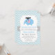 Fêtez le jalon de l'achèvement de la maternelle ou de l'école primaire pour les enfants avec une fête de remise de diplômes! Cet invitation à l'éléphant bleu mignon avec un casquette carré académique est parfait pour les parents, les enseignants et les écoles qui planifient une fête de remise des diplômes ou une cérémonie pour les enfants diplômés ! L'éléphant est approprié parce qu'ils sont l'un des animaux les plus intelligents. Elégant et élégant pastel bleu et blanc chevron zigzag motif arrière - plan. Personnalisez facilement avec les détails de votre fête.