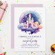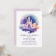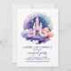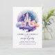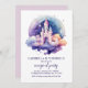 Jetez une fête magique pour l'anniversaire de vos enfants ! Avec une magnifique illustration aquarelle d'un château de conte de fées, vous pouvez facilement personnaliser la typographie violette profonde avec votre nom, âge et détails de fête. L'arrière de l'invitation a un arrière - plan simple, violet clair.