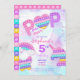 Invitation d'anniversaire licorne arc-en-ciel à faire tourner Pop it avec bulles violet rose pastel pour fille.
