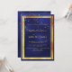 Une carte d'invitation branchée et moderne de 50e anniversaire (ou de n'importe quel âge) pour hommes, hommes, hommes. Un arrière - plan bleu marine. La couleur bleue est inégale. Avec un cadre en faux or et des confettis dorés saupoudrés, des lettres de couleur dorée. Personnalisez et ajoutez votre nom et les détails de votre fête. Dos : arrière - plan bleu avec saupoudrer de confetti.