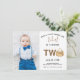 Carte d'invitation à l'anniversaire mignonne avec l'aquarelle illustrant la benne chinoise kawaii sur plaque de bois. Le texte dit : "NOTRE PETIT DÉVERSEMENT".