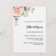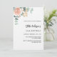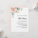 Un arrière - plan blanc chic. Décoré d'or rose et de fleurs roses rousses, de fleurs roses et de feuilles d'eucalyptus vert aquarellés, de sprigs, de verdure et d'une fausse feuille d'or. Personnalisez et ajoutez votre nom et les détails de votre fête. Dos : or rose couleur arrière - plan.