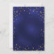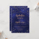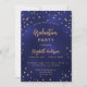 Une carte d'invitation glamour pour une fête de remise de diplômes pour lui et elle. Un arrière - plan bleu marine décoré d'étoiles faux or. La couleur bleue est inégale. Personnalisez et ajoutez un nom et des détails du parti. Le texte Graduation et le nom sont écrits avec un script de style à la main moderne. Texte de couleur dorée. Retour : bleu marine arrière - plan et étoiles d'or.