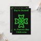 Cette invitation à la fête à carte plate est noire avec lettrage vert et a un symbole de noeud Celtique irlandais vert vif. Customisez vos informations à l'avant et à l'arrière avec les modèles.