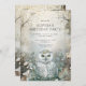 Une invitation magique d'anniversaire à thème de forêt enchantée pour une petite fille ou garçon fête d'anniversaire, avec un cadre enchanté de forêt dans les bois avec un hibou magique, des fleurs et des arbres. Disponible en version imprimée, en téléchargement numérique à envoyer sur votre téléphone, ou les deux.