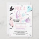 Une fête d'halloween pas éffrayante ! Pastel rose Peek a Boo Ghost Halloween 2e invitation anniversaire avec arrière - plan rayé noir et blanc.