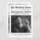 Invitation d'anniversaire dans un journal de style ancien, avec des informations en gros titre sur la fête, des photos tout au long des années, et un modèle texte facile à personnaliser.