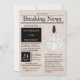 Magnifique journal de style vintage, "Breaking News", édition spéciale avec des modèles personnalisables avec une fille en robe de soirée. Sa belle robe aquarelle est d'une couleur argent blanc avec des accents de faux brillant.
