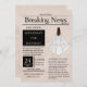 Magnifique journal de style vintage, "Breaking News", édition spéciale avec des modèles personnalisables avec une fille en robe de soirée. Sa belle robe aquarelle est d'une couleur blanc argenté avec des accents de faux brillants.