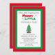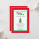 Le thème de Noël était joyeux petites invitations à la fête. L'Invitation propose un thème de vacances rouge et vert avec des flocons de neige gris, un sapin de Noël et des cadeaux