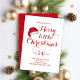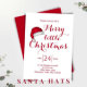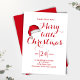 Ce design comporte une joyeuse petite invitation de Noël, un chapeau de Santa aquarelle, un joli joli festin, minimaliste moderne, typographie de script, calligraphie, un fantaisie, simple rouge et blanc, drôle, thème de fête de vacances.