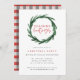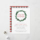 Joyeuses Fêtes aquarelle fleurie/feuillage invitation à la fête. Hiver thème aquarelle wreath invitation fête fériée. Vérifie l'arrière tartan. Une approche moderne de Noël traditionnel rouge et vert.