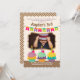 Célébrez l’anniversaire de votre adorable enfant de trois ans avec ce design coloré : trois petits gâteaux délicieux avec des bougies et des cerises, un bouquet d’anniversaire aux couleurs vives et un cadre photo assorti pour le dernier portrait de votre enfant, sur un arrière - plan à pois mignon. Remplacez l'exemple de photo et de texte par le vôtre pour un cadeau personnalisé.