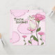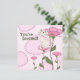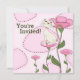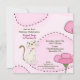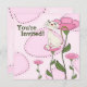 Invitation de fête d'anniversaire personnalisée pour filles avec un chaton blanc mignon et des fleurs roses.
