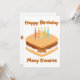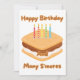 Cette invitation présente un design avec les mots "Joyeux Anniversaire Et Beaucoup De S'mores" dans une police de caractères plus sucrée présentant des lettres brunes avec un contour beige affichant un style de s'more de dessin animé surmonté de cinq bougies d'anniversaire de couleurs différentes dans ce thème et style d'anniversaire. Imprimé sur un papier classique de 17,5 pt d'épaisseur avec une finition mate non couchée avec une texture de coquille d'œuf fabriqué et imprimé aux États-Unis avec "Joyeux Anniversaire" imprimé au dos.