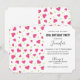 Une invitation d'anniversaire avec un motif mignon composé de cœurs roses et verts sur fond blanc.