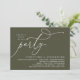 Annoncez et partagez votre bonheur toujours après dans le style avec notre design moderne et romantique vert olive thème design (Heureusement toujours après la fête) mariage dîner elopement déjeuner brunch fête carte d'invitation. Idéal pour les couples qui ont décidé de célébrer leur meilleure journée. Avec son design sophistiqué et ludique, cette invitation vous donnera le ton pour un événement inoubliable. La carte d'invitation présente un thème design de script moderne et minimaliste, ajoutant une touche d'élégance intemporelle à votre célébration. Conçu par TeeshaDerrick