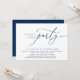 Annoncez et partagez votre bonheur toujours après dans le style avec notre design moderne et romantique marine bleu thème design (Heureusement toujours après la fête) dîner mariage elopement déjeuner brunch fête carte d'invitation. Idéal pour les couples qui ont décidé de célébrer leur meilleure journée. Avec son design sophistiqué et ludique, cette invitation vous donnera le ton pour un événement inoubliable. La carte d'invitation présente un thème design de script moderne et minimaliste, ajoutant une touche d'élégance intemporelle à votre célébration. Conçu par TeeshaDerrick