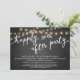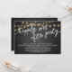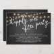 Annoncez votre bonheur toujours après dans le style (Heureusement toujours après la fête) avec notre moderne rustique gris foncé chalkboard style arrière - plan graphique, cottage string lumières design mariage elopement fête carte d'invitation. Notre carte Happily Ever After Party Celebration Invitation est idéale pour les couples qui ont décidé d'fuir et veulent organiser une fête pour célébrer leur union. Avec son design sophistiqué et ludique, cette invitation vous donnera le ton pour un événement inoubliable. La carte d'invitation présente un design minimaliste et rustique élégant, ajoutant une touche d'élégance intemporelle à votre célébration. Conçu par TeeshaDerrick