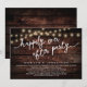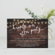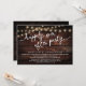 Annoncez votre bonheur toujours après dans le style (Heureusement toujours après la fête) avec notre arrière - plan en bois marron rustique moderne, lampes à cordes de cottage design mariage elopement de célébration carte d'invitation. Notre carte Happily Ever After Party Celebration Invitation est idéale pour les couples qui ont décidé d'fuir et veulent organiser une fête pour célébrer leur union. Avec son design sophistiqué et ludique, cette invitation vous donnera le ton pour un événement inoubliable. La carte d'invitation présente un design minimaliste et rustique élégant, ajoutant une touche d'élégance intemporelle à votre célébration. Conçu par TeeshaDerrick