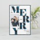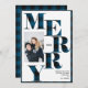 Doté d'un plaid typographique de buffle vert et noir / à damiers mot motif "MERRY" dans un agencement semi-circulaire cette carte en vichy moderne comprend un petit espace vertical à gauche pour vous la meilleure photo de portrait et le texte noir qui peut être personnalisé. Facile à customiser, faites une grande impression avec cette carte de voeux rustique encore moderne. La couleur verte peut être facilement changée pour s'adapter à votre schéma de couleurs.