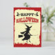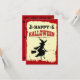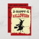 Illustration Halloween joyeuse avec décoration sorcière dans cadre rouge grunge