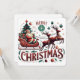 Diffusez la joie classique des fêtes avec ce design enchanteur "Joyeux Noël" ! Il présente un Père Noël jovial dans son traîneau magnifiquement orné, tiré par deux magnifiques rennes en plein vol. La scène est parée d'éléments traditionnels de Noël comme un arbre décoré, des ornements festifs, des flocons de neige et du houx. Le style inspiré de l'époque et la palette de couleurs chaudes capturent la magie intemporelle de la saison. Parfait pour les cartes, les vêtements, la décoration intérieure et les cadeaux pour rendre toute célébration de Noël spéciale.