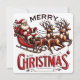 Invitation Joyeux Noël Père Noël Traîneau & Renne Vintage