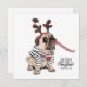 Image par Afishka | Shutterstock. ID de l'image : 735633319 | Carte de Noël. Chien Pug dans un cardigan rayé, avec un masque de cerf à cornes et avec un sifflet de fête drôle rouge qui souffle. Illustration vectorielle.